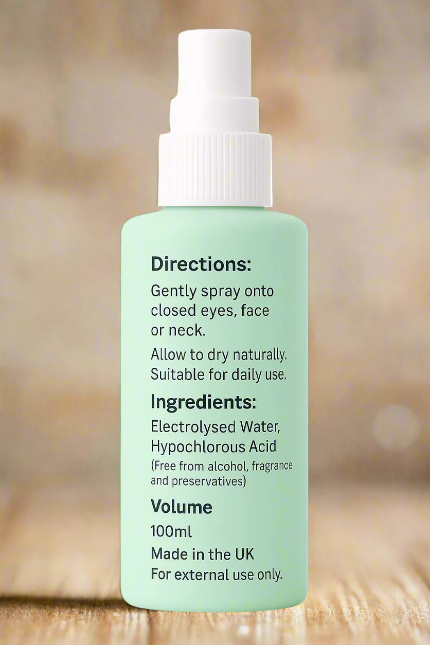 A hypochlorous facial mist designed for delicate eyes, lids, and skin.